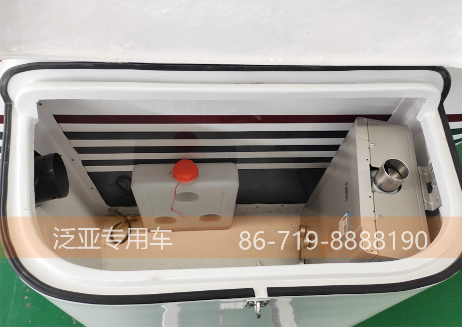车顶装有4个示廓灯4个示宽灯,保证夜晚可以安全行驶。前方配有一个储物箱,内装有一台燃气热水器,其余空间可以用来储存些杂物,建议把液化气坛放在里面。储物箱两侧装有1套反光标、前卫灯和1个室电插座,是用来为房车充电的。车身装有2个500*400的小舱门,左侧舱门可以用来储存杂物,右侧舱门在选装户外厨房的情况下用来装抽拉式厨房,厨房下方我们准备好一根气管用来接前储物箱的气坛。厨房旁边是一个抽拉式的花洒,用来洗菜做饭用的,使用非常方便,即使在户外也能够轻松烹饪。