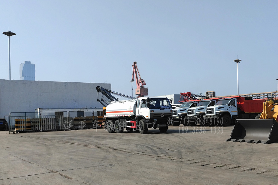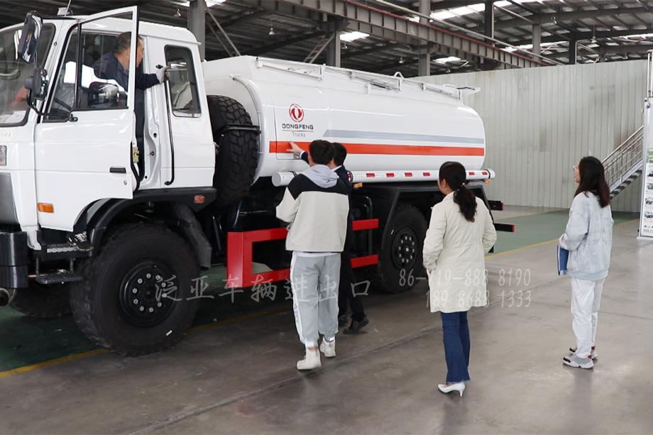 2021年9月3日东南亚客户一行来我公司考察后,订购一辆六驱EQ2102加运油车。该车在十一假期之前顺利完工,10月10日客户代表来我公司验车,得到客户认可后安排了装船地点和船运时间,于10月21日出发,10月23日到达目的港口完成报关手续并准备装船。