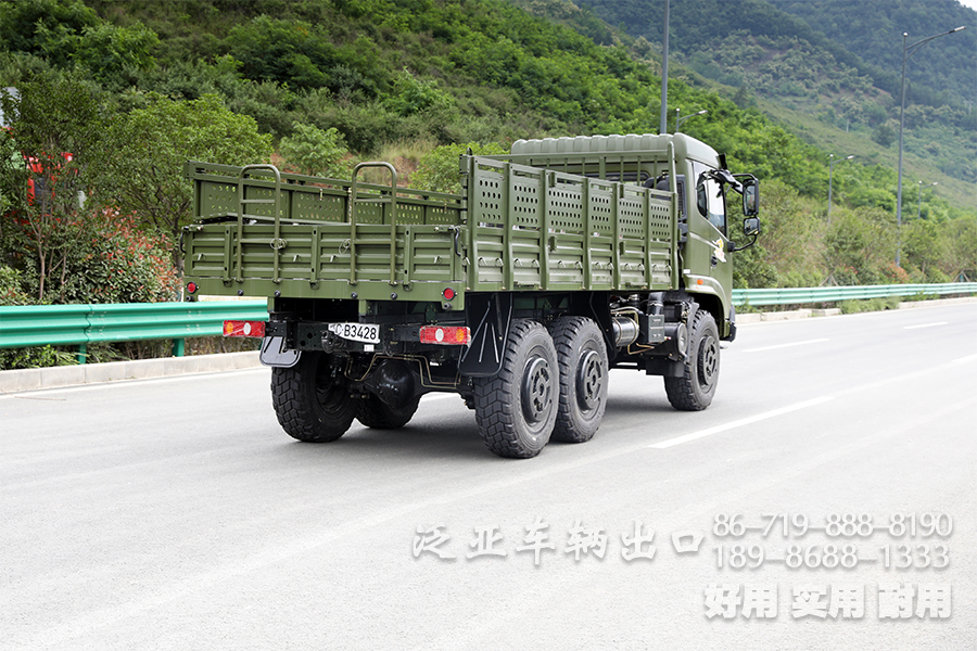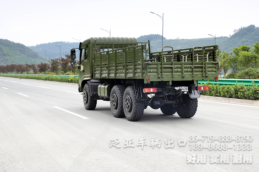 该车的驾驶室相比原来更加的豪华,两层的踏步让上车更为方便,轮胎采用12.5 R20的越野专用轮胎,一共有6条备胎,我们设计了专用的备胎架,这样的话方便备胎的装卸,油箱我们采用的是160升的全铁油箱。
