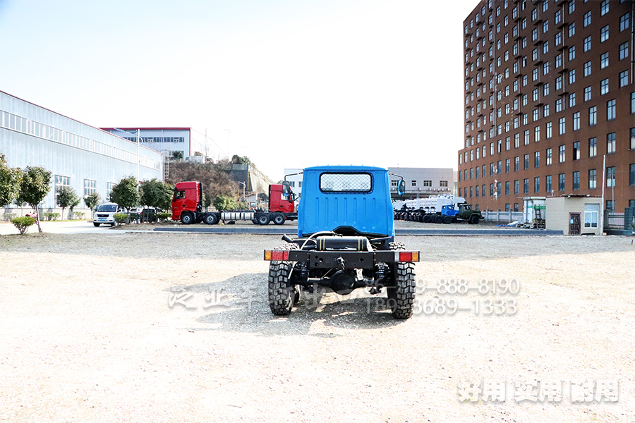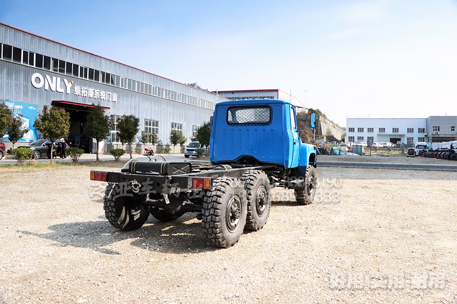 EQ2082型,长头六驱,140-2型驾驶室,康明斯140马力国三发动机,发动机型号为B190 33,韶齿A121五档变速箱,3190+1100MM轴距,前桥为东风3.5吨,前中后桥,230MM大梁,11R-18轮胎,后牵引钩,选装前置机械绞盘。