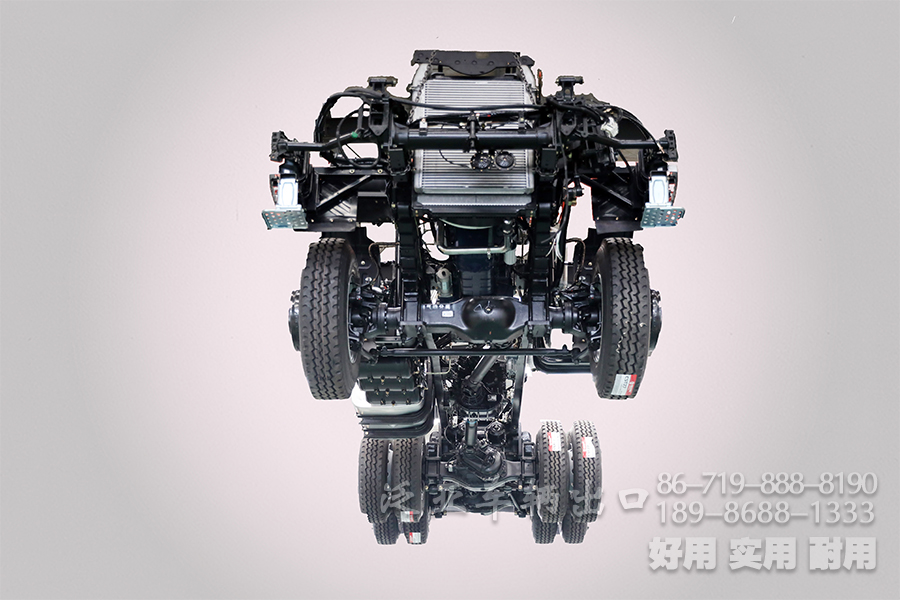 6*6东风三桥底盘,350马力,双层车架,最大可做到25吨,底盘总长8米,该底盘适合改装成自卸汽车、厢式运输车、罐式运输车等重型卡车。