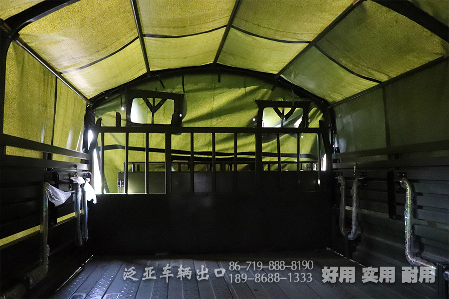 货箱底板采用纯铁材质,带有防滑花纹。两侧边板安装折叠座椅,尾部带有2个折叠爬梯。