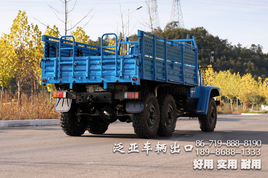 | 特殊配置 | 后车窗带有防护网,6x6全轮驱动,专利设计,专为恶劣路况设计,可选装前置绞盘,牵引力为44100N。 |