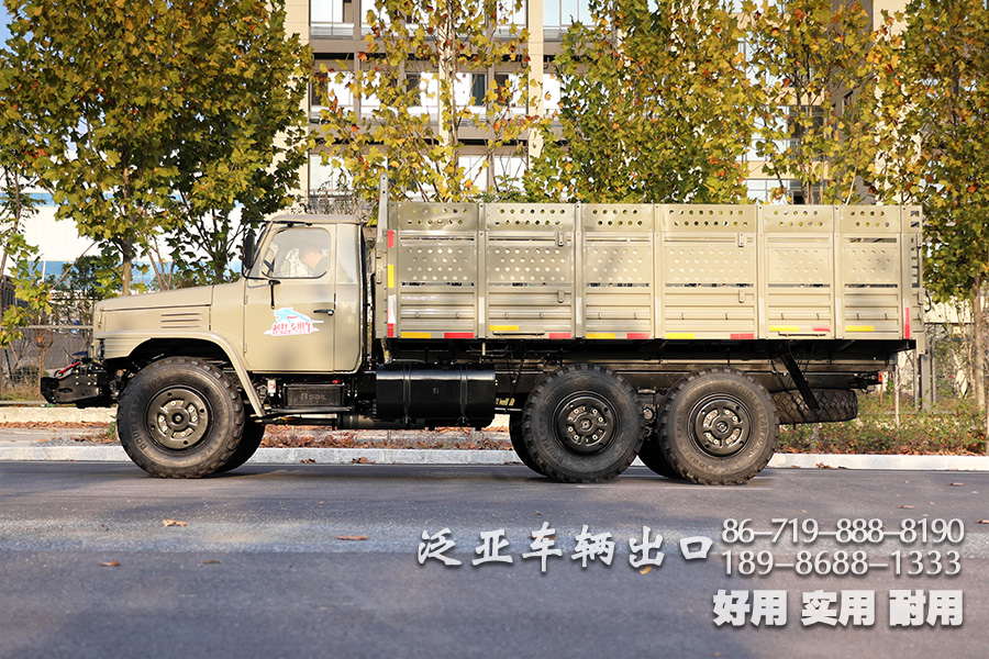 东风六驱加高货箱版210马力越野卡车是一款综合性能十分优秀的卡车,该车带有冷启动、防空灯、副油箱、工具箱等军用附加装置,整车在-41℃环境温度下能顺利启动。