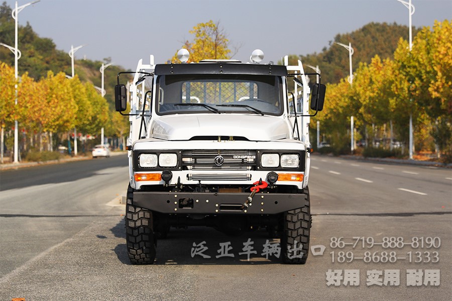 特殊配置 驾驶室后车窗带有防护网,6x6全轮驱动,专利设计,专为恶劣路况设计,可选装前置绞盘,牵引力为44100