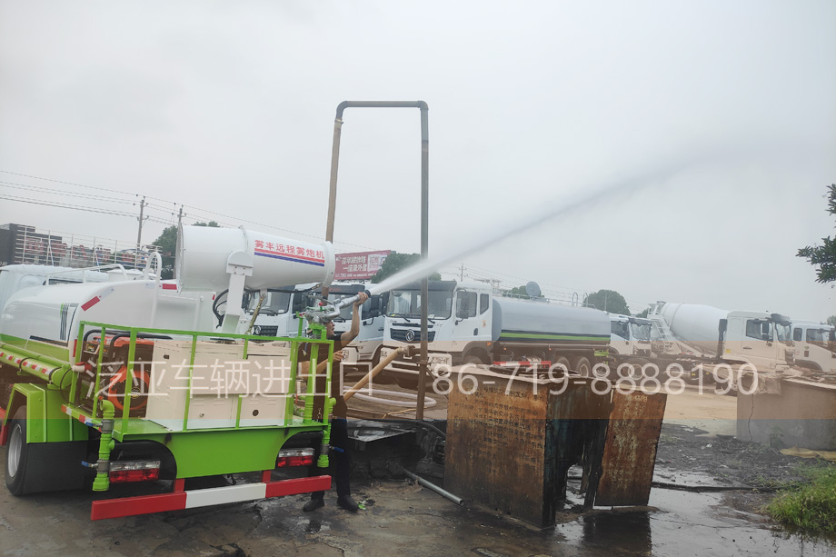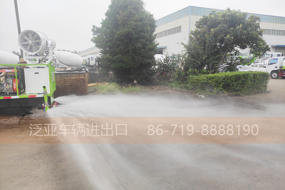 上装 可后冲,后洒,侧喷,高炮,带洒水平台,吸水管2根,带有音乐喇叭和消防接口,尾部平台带喷雾机
