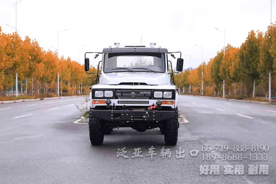 特殊配置 驾驶室后车窗带有防护网,6x6全轮驱动,专利设计,专为恶劣路况设计,可选装前置绞盘,牵引力为44100
