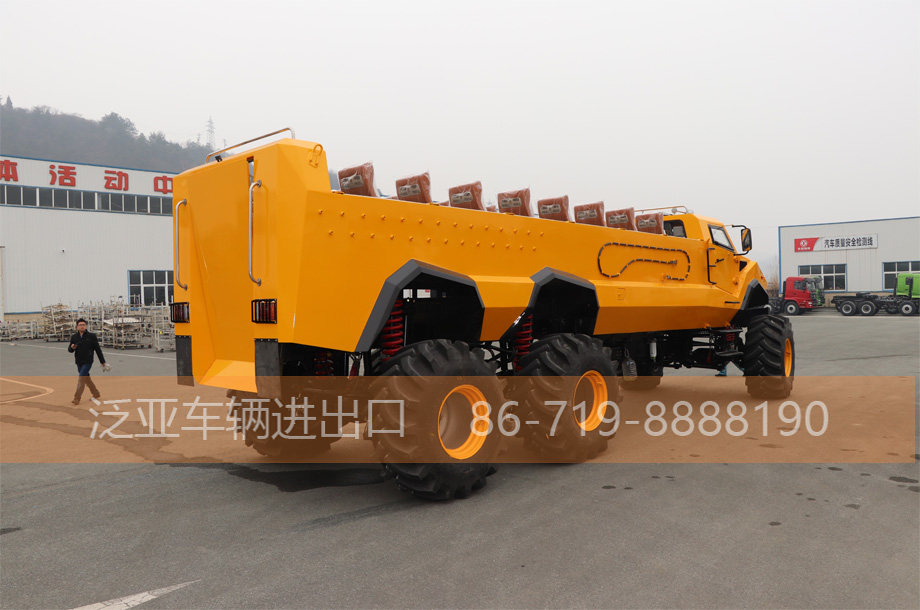 | 专用配置 | 1、前中后悬架全新开发,自主专利设计(外观设计专利证书ZL 2018 3 0507510.7),弹簧行程大,舒适性和稳定性高; 2、6×6全轮驱动,专利设计(实用新型专利证书ZL2018 2 1593556.6),适应沙漠地区; 3、全新研发的前脸,专业大脚怪式沙漠旅游车; 4、自动开启的尾部仓门,方便乘客上下车; |